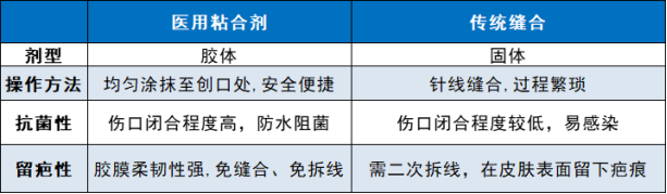 相比较传统的针线缝合,博恩锐尔医用粘合剂利用其特制的涂抹器与涂抹刷头,将皮肤胶水均匀涂抹于创口处,操作安全便捷,防水阻菌,无需缝合。