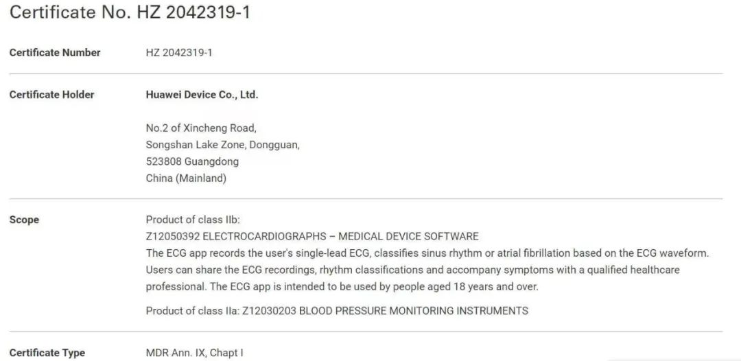 事实上,早在华为WATCH GT 3 Pro在国内上市时,华为ECG App就已拿到了国家二级医疗器械认证,并取得了良好的市场反馈。而此次华为ECG App和HUAWEI WATCH D腕部心电血压记录仪成功获得欧盟CE MDR医疗器械认证,再一次印证了华为在健康领域的成果。