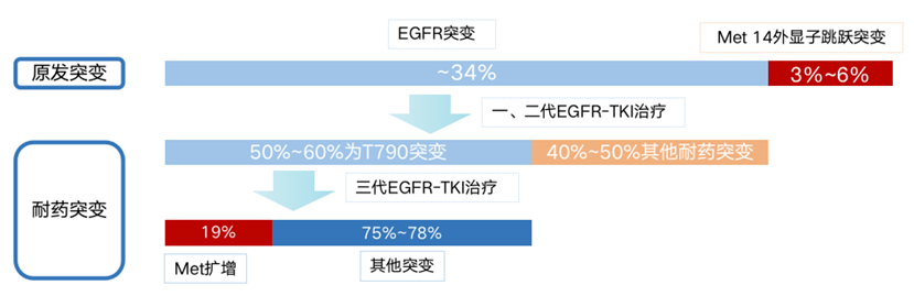 而对于Met扩增,主要发生于EGFR二线治疗后的耐药突变,AURA3研究显示,二线应用奥希替尼的耐药机制较为复杂,突变类型较多,其中Met扩增占比为19%2。