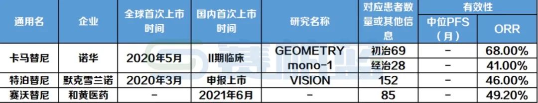 目前,国内的上市药物只有和黄医药的赛沃替尼,特泊替尼已于今年3月份在国内申报上市,卡马替尼依旧在临床试验阶段。