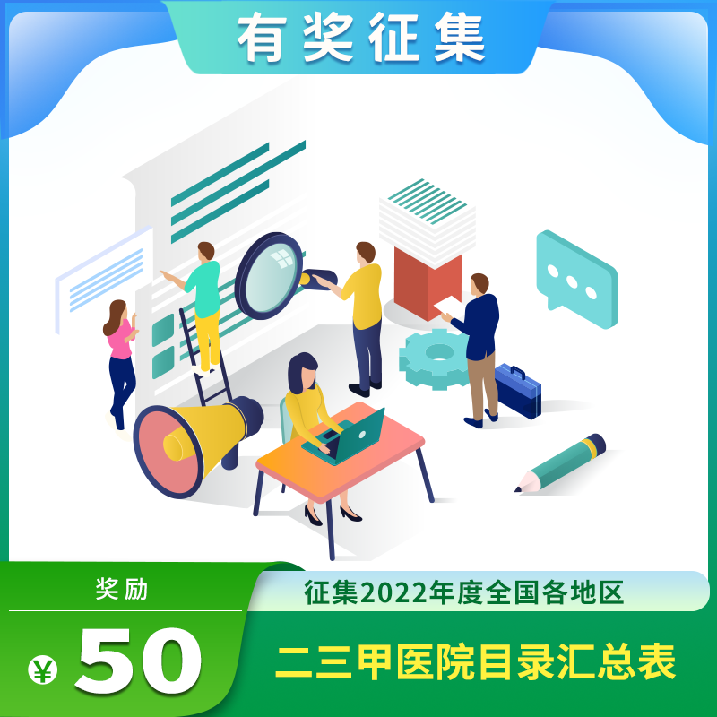 【任务金额】:提供最新年度完整的医院目录汇总表奖励50元/份,经核验如数据有缺失奖励5元/份参与奖