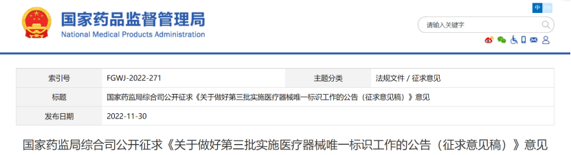 11月30日,国家药监局综合司发布《关于做好第三批实施医疗器械唯一标识工作的公告(征求意见稿)》(以下简称《征求意见稿》)。《征求意见稿》指出,按照风险程度和监管需要,确定部分临床需求量较大的一次性使用产品、列入医保集采范围的品种、医疗美容相关产品等部分第二类医疗器械作为第三批医疗器械唯一标识实施品种。《第三批实施医疗器械唯一标识的产品目录》中包括141种医疗器械,如超声手术设备附件、医用激光光纤、高频手术设备、电动吻合器、血管缝合装置、光学内窥镜、电子内窥镜、腹膜透析设备、起搏系统分析设备、活检针、防护服、助听器、血细胞分析仪器等。对列入第三批实施产品目录的医疗器械,注册人应当注意以下几点:根据《征求意见稿》,2024年6月1日起生产的医疗器械应当具有医疗器械唯一标识;此前已生产的第三批实施唯一标识的产品可不具有唯一标识。生产日期以医疗器械标签为准。2024年6月1日起申请注册的,注册申请人应当在注册管理系统中提交其最小销售单元的产品标识;2024年6月1日前已受理或者获准注册的,注册人应当在产品延续注册或者变更注册时,在注册管理系统中提交其最小销售单元的产品标识。2024年6月1日起生产的医疗器械,在其上市销售前,注册人应当按照相关标准或者规范要求将最小销售单元、更高级别包装的产品标识和相关数据上传至医疗器械唯一标识数据库,确保数据真实、准确、完整、可追溯。对于已在国家医保局医保医用耗材分类与代码数据库中维护信息的医疗器械,要在唯一标识数据库中补充完善医保医用耗材分类与代码字段,同时在医保医用耗材分类与代码数据库维护中完善医疗器械唯一标识相关信息,并确认与医疗器械唯一标识数据库数据的一致性。2021年1月1日,第一批9大类69个品种开始实施医疗器械唯一标识。2022年6月1日,其他第三类医疗器械(含体外诊断试剂)全面实施医疗器械唯一标识。以上是国家层面的统一动作。截至目前,第三类医疗器械已全面落实唯一标识。另据赛柏蓝器械观察,海南、福建、四川、北京、天津、山东、宁夏等诸多省市,也已陆续开展第二类医疗器械医疗器械唯一标识工作。赛柏蓝器械获悉,虽然此前国家没有明确要求二类医疗器械必须具备唯一标识,但从事二类医疗器械生产的企业,也在主动推进唯一标识。据了解,以往许多医疗器械时常是一整批共用一个批号,如果某个产品出现问题,厂家只能追溯整个批次,但无法精确到具体产品。而医疗器械唯一标识可以使企业明确知道每个产品出厂后用在了哪里,一旦出现问题可能及时溯源,利于提升企业内部质量管理水平。需要关注的是,今年开始施行的新版《医疗器械生产监督管理办法》中明确,医疗器械注册人、备案人、受托生产企业应当按照国家实施医疗器械唯一标识的有关要求,开展赋码、数据上传和维护更新,保证信息真实、准确、完整和可追溯。其中规定,未按照国家实施医疗器械唯一标识的有关要求,组织开展赋码、数据上传和维护更新等工作的,由药品监督管理部门依职责责令限期改正;拒不改正的,处1万元以上5万元以下罚款;情节严重的,处5万元以上10万元以下罚款。而在第三批医疗器械唯一标识工作全面启动后,更多二类医疗器械也将纳入全面监管。在医疗器械唯一标识的推进过程中,其与医保编码的对接也引起关注。《征求意见稿》中指出,医疗器械注册人要切实落实主体责任,鼓励基于唯一标识建立健全追溯体系,做好产品召回、追踪追溯等有关工作。医疗器械经营企业要在经营活动中积极应用唯一标识,做好带码入库、出库,实现产品在流通环节可追溯。医疗机构要在临床使用、支付收费、结算报销等临床实践中积极应用唯一标识,做好全程带码记录,实现产品在临床环节可追溯。此外,省级药品监督管理部门要加强与辖区内卫生、医保部门协同,推动三医联动。省级卫生健康部门要指导辖区内医疗机构积极应用唯一标识,加强医疗器械在临床应用中的规范管理。省级医保部门要加强医保医用耗材分类与代码与医疗器械唯一标识的关联使用,推动目录准入、支付管理、带量招标等的透明化、智能化。多码对接后,医疗器械全链条联动监管,更多监管死角将被清扫。今年7月,宁夏召开全区医疗器械唯一标识全环节试点启动会。会上指出,宁夏将医疗器械唯一标识的实施链条,由生产、经营环节,延伸到了二级以上公立医院等使用终端,实现了全环节覆盖。全面实施医疗器械唯一标识后,全区二级以上公立医院在患者身上使用的每一件纳入医保目录的二三类医疗器械,均可通过信息化手段追溯至该件医疗器械的生产商、经销商、供应商。医疗器械身份证全面落地后,行业也将迎来监管新阶段。