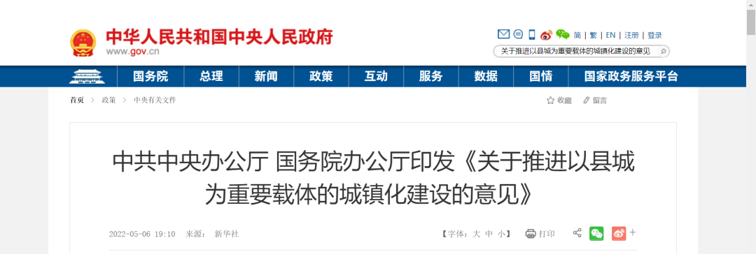 近日,中共中央办公厅、国务院办公厅印发了《关于推进以县城为重要载体的城镇化建设的意见》(下称《意见》),要求各地区各部门结合实际认真贯彻落实。