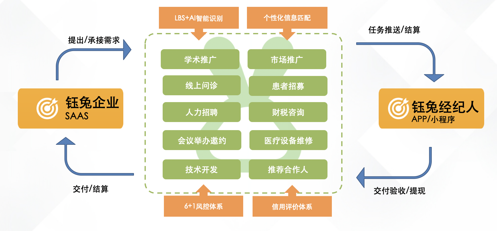 钰兔科技以“为医药企业发展保驾护航”为使命,以“重塑百万医药人职业生态”为愿景,致力服务于为医药、医疗器械等生产型企业和经营型企业搭建共享、共创、共赢平台,为医药人提供轻松、自由执业。实现医药人能力变现、资源变现、时间变现的双赢共享平台。