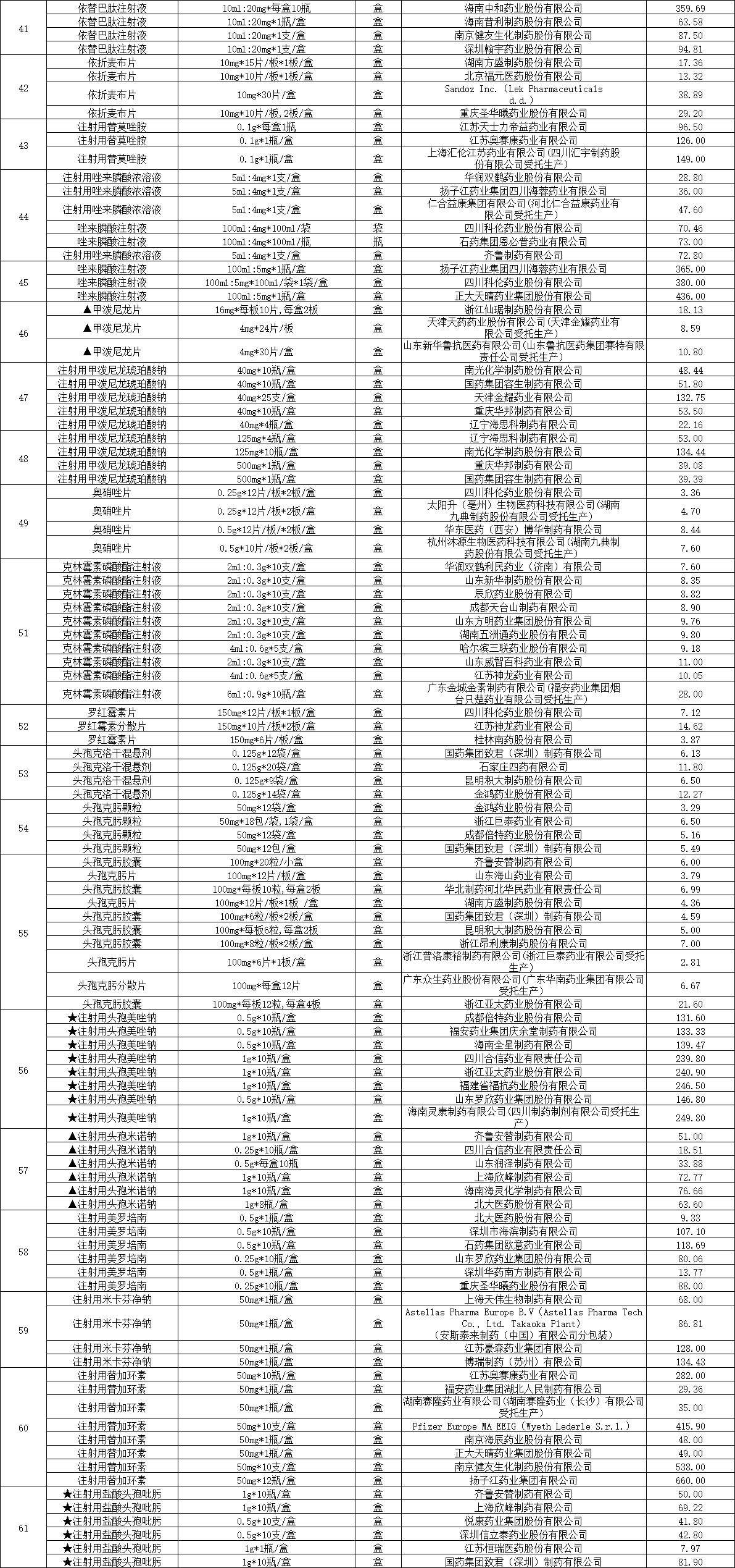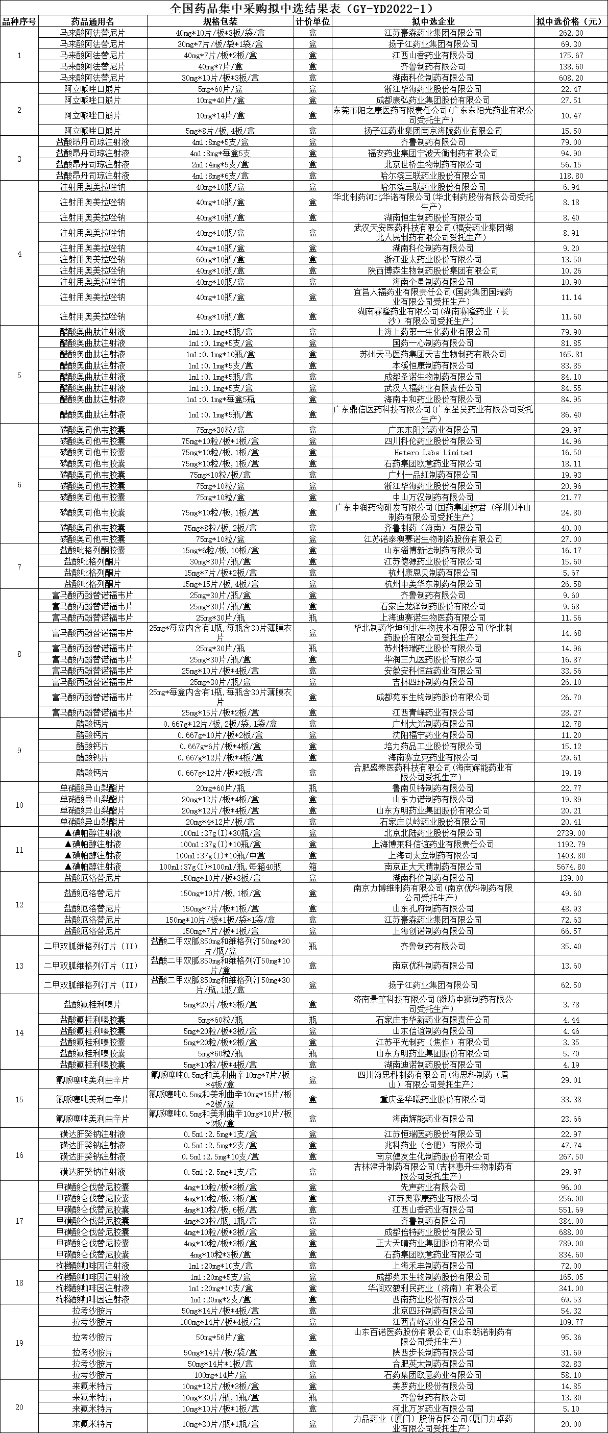 而抗病毒药物奥司他韦每片从平均4.5元降至1元。此外,美国辉瑞公司的替加环素、日本安斯泰来公司的米卡芬净、西班牙艾美罗公司的依巴斯汀、意大利博莱科信谊公司的典帕醇等4个原研药中选,平均降价67%。
